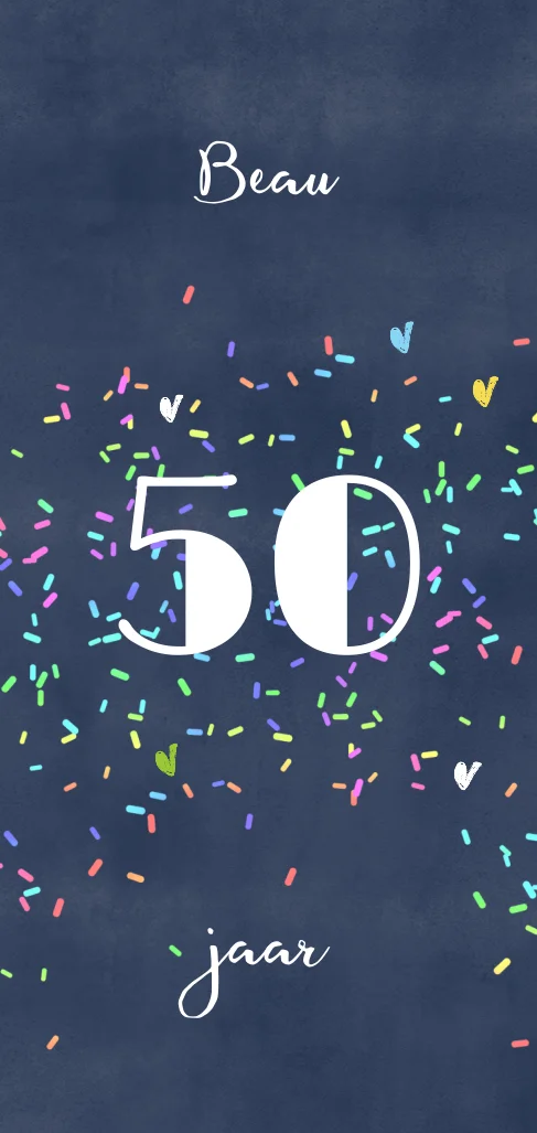 Feestelijke uitnodiging 50 jaar verjaardag met confetti in vrolijke kleuren. (9928) Of het nu gaat om een intiem feestje met familie en vrienden of een groot jubileumfeest, deze uitnodiging past perfect bij de gelegenheid. Het vrolijke design en de levendige kleuren zorgen ervoor dat de gasten meteen in de feeststemming komen. Met de tags 'blauw', 'getekend', 'kleurrijk' en 'vrolijk' past deze uitnodiging perfect bij verschillende thema's en kleurenschema's.