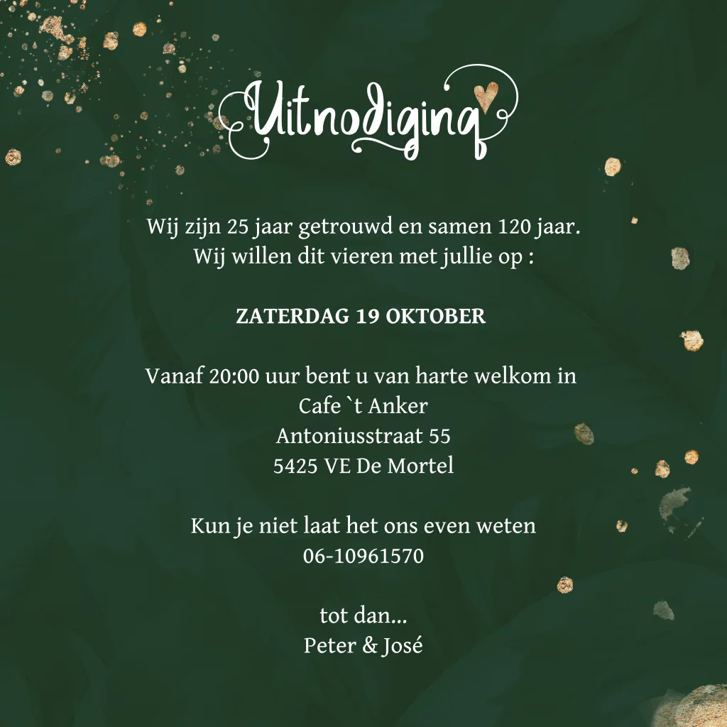 Hippe uitnodiging groen. Je kunt deze mooie uitnodigingskaart gebruiken voor een jubileum, verjaardag of ander een feestje wat je samen viert. (23712)