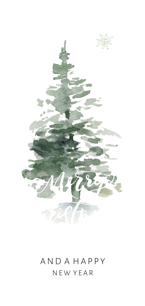 Zakelijke kerstkaart met waterverf kerstboom en foliedruk. (23674)