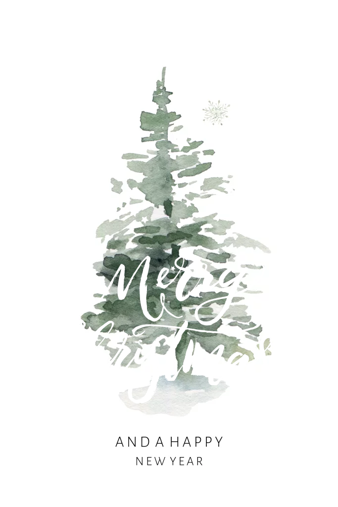 Zakelijke kerstkaart met foliedruk en watercolor kerstboom. (23682)