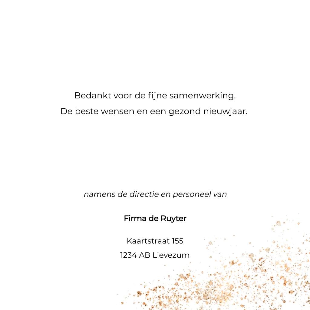 Zakelijke kerstkaart roest goudlook spetters