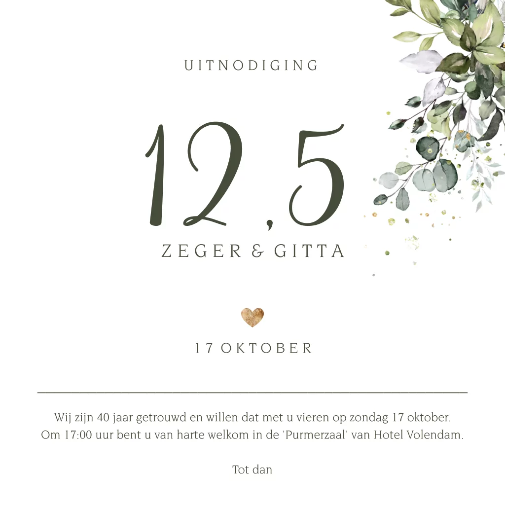 12,5 huwelijks jubileum eucalyptus goudlook uitnodiging