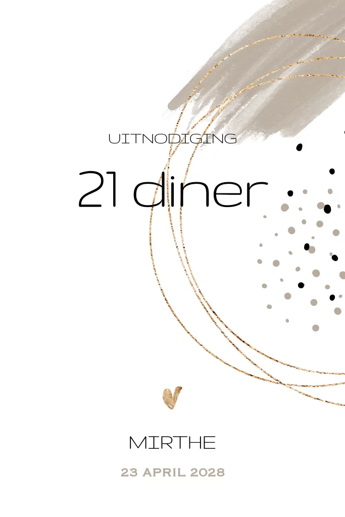 21 diner uitnodiging modern met goudlook ringen, hartje en verfstreep (22505)