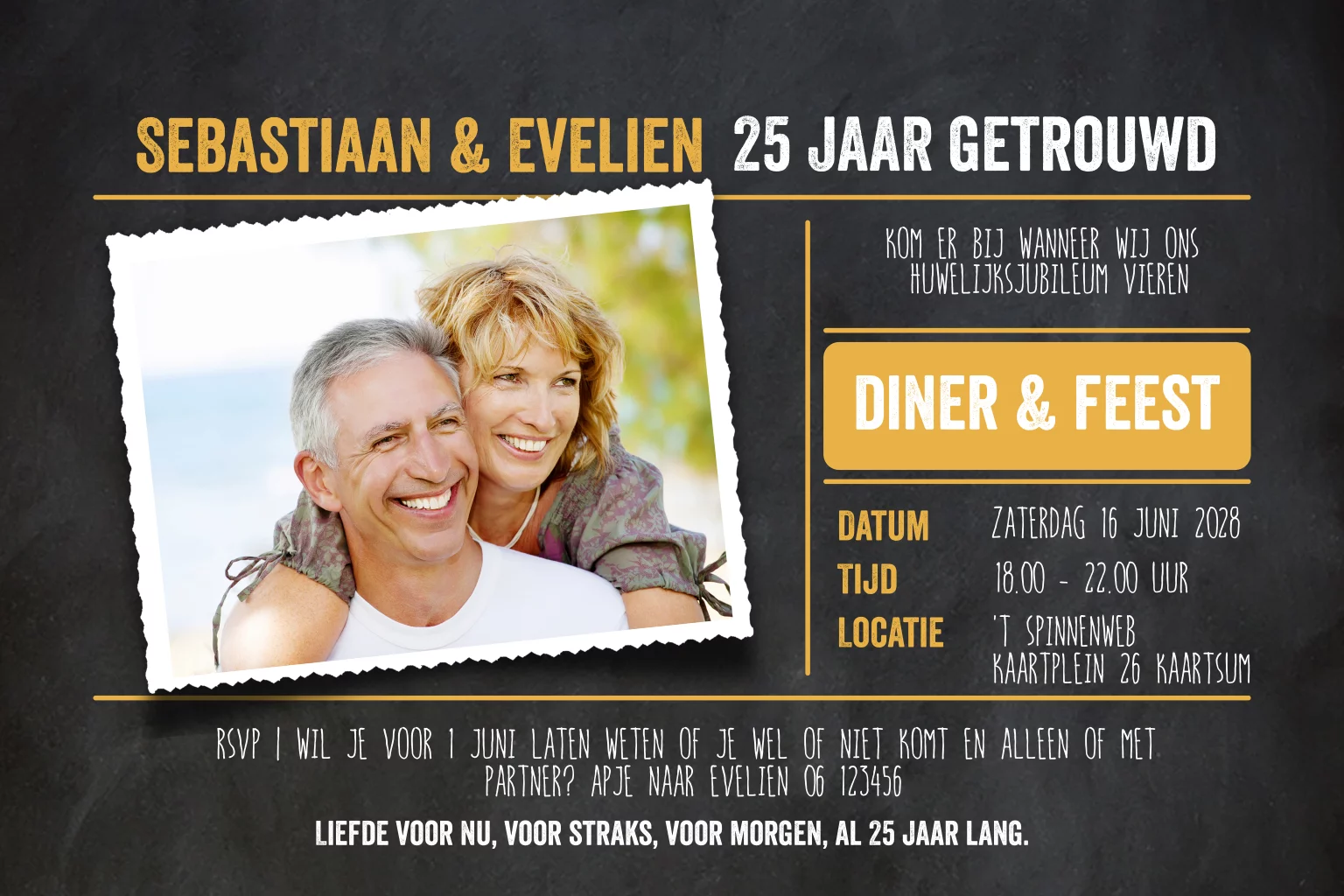 25 jaar getrouwd uitnodiging met foto en krijtbord achtergrond