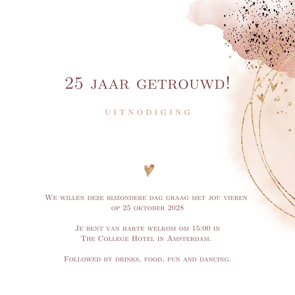 25 jaar getrouwd uitnodiging terra goudlook