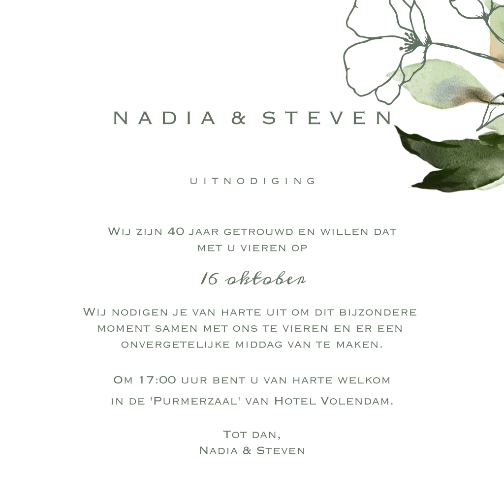 40 jarig jubileum uitnodiging foliedruk en bloem