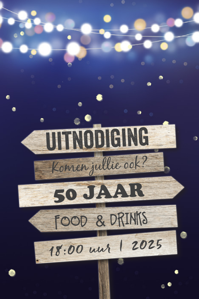 50 jaar verjaardag uitnodiging blauw met wegwijzer borden