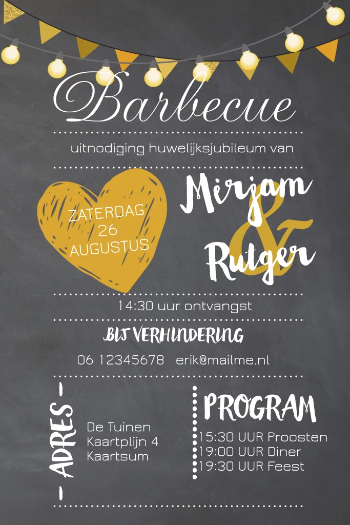 Super hippe uitnodiging bbq huwelijksjubileum 45
