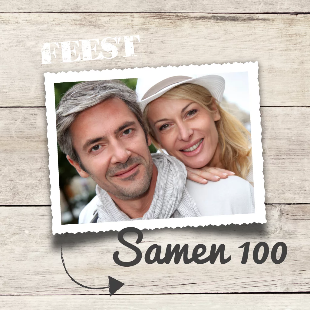 Verjaardagsuitnodiging dubbel feest met fotokader en hout achtergrond.(2479)