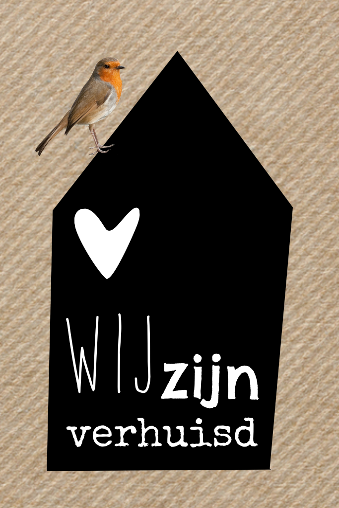 Eerdaags verhuizen? Hippe Verhuiskaart met kraft print, huisje en hartje. Alle teksten staan los! (2547)