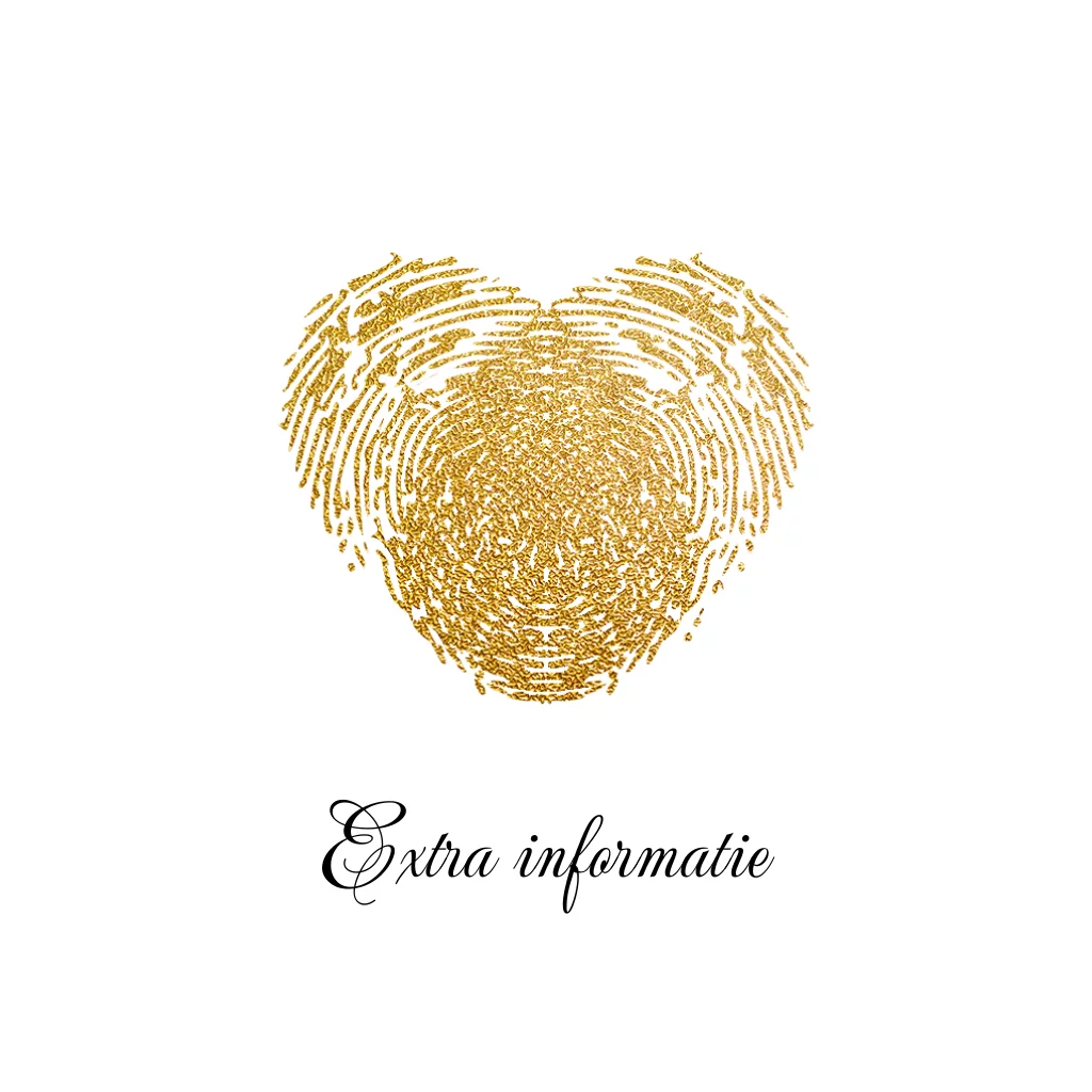 Extra informatie trouwkaart met goud gekleurde vingerafdruk