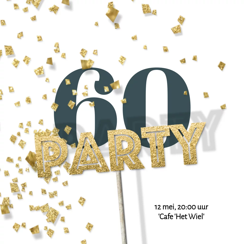 Uitnodiging voor een 60ste verjaardag. De goud look spetters geven de kaart een extra feestelijke uitstraling. (24093)