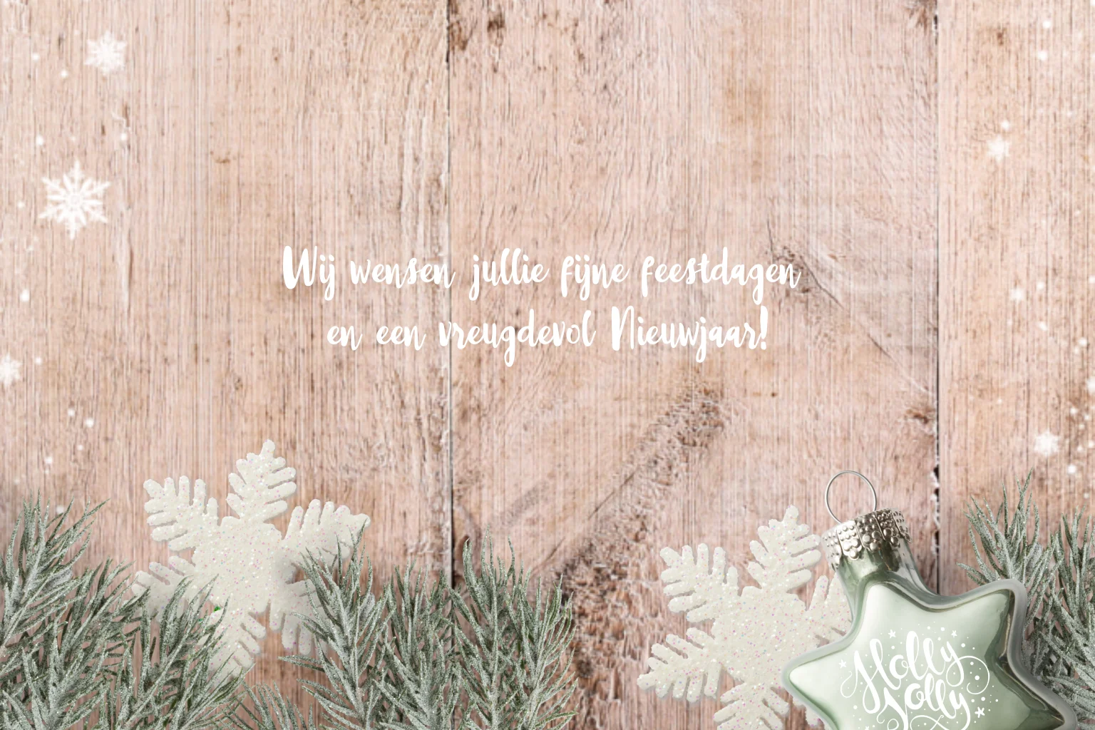 Foto kerstkaart met hout en kerstbal, lekker hip en modern door de sterren en leuke versieringen. (7840)