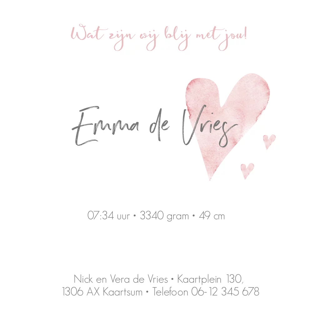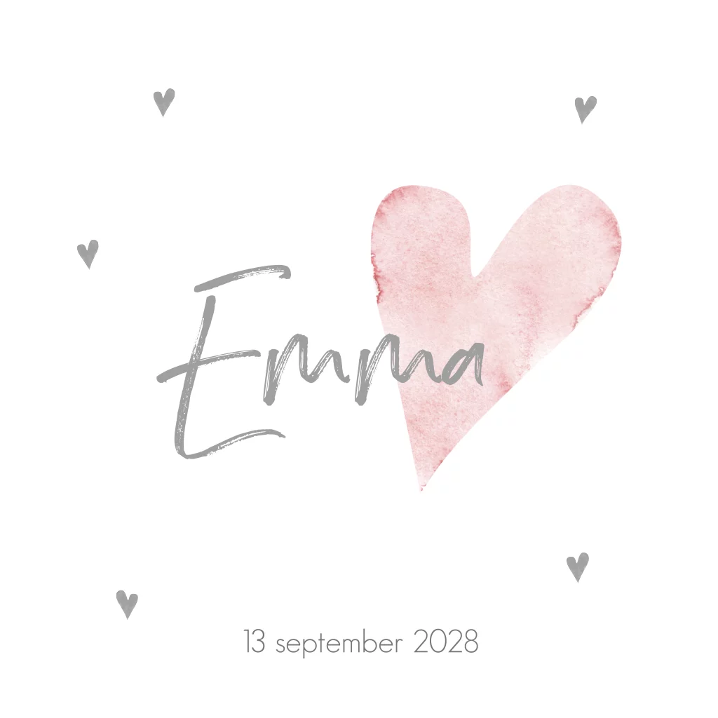 Geboortekaartje meisje met groot roze hart. (9975) Geboortekaartje Emma