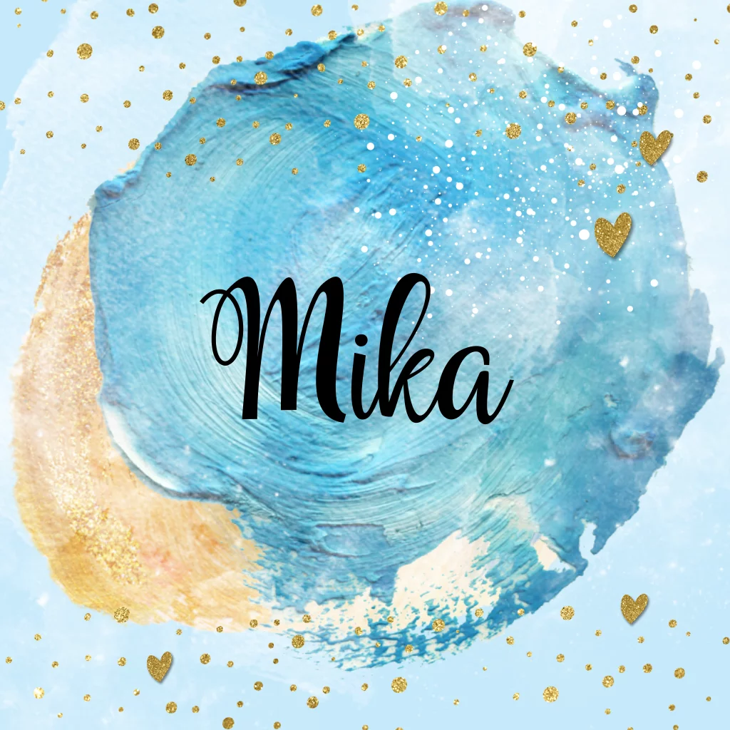 Geboortekaartje jongen met kleurige achtergrond met goudkleur en blauw glitter look. (6954) Geboortekaartje Mika
