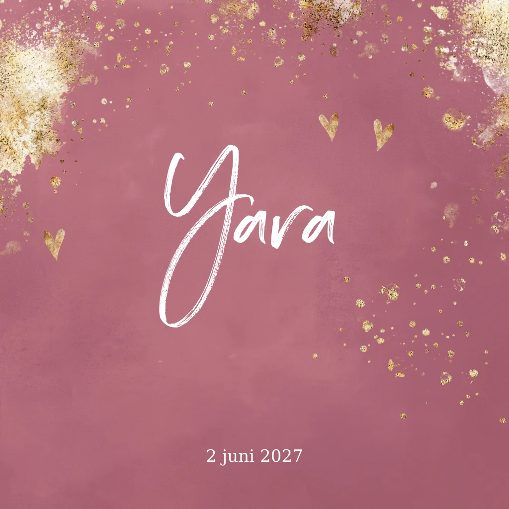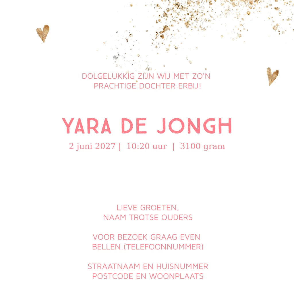 Geboortekaartje meisje jongen met goud-look spetters. (9931) Geboortekaartje Yara