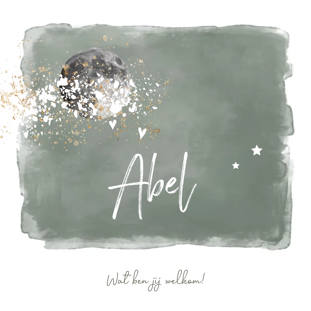 Geboortekaartje voor een jongen met groen aquarel en een maan. (23922)