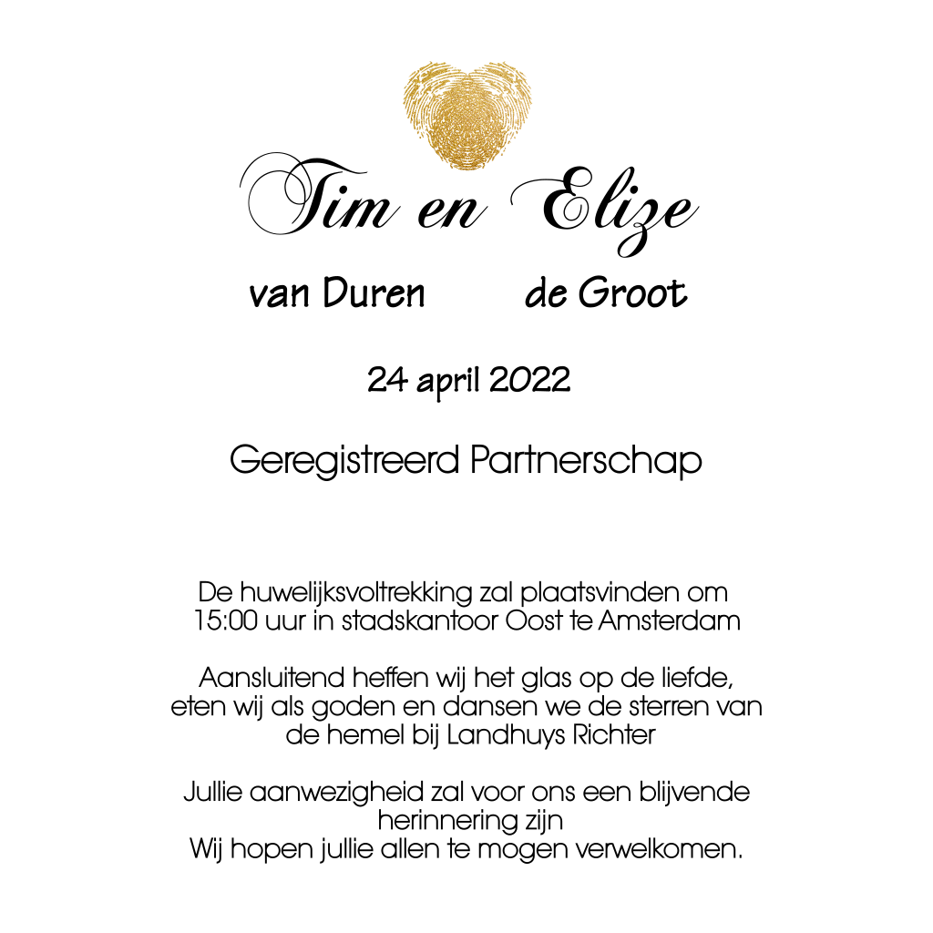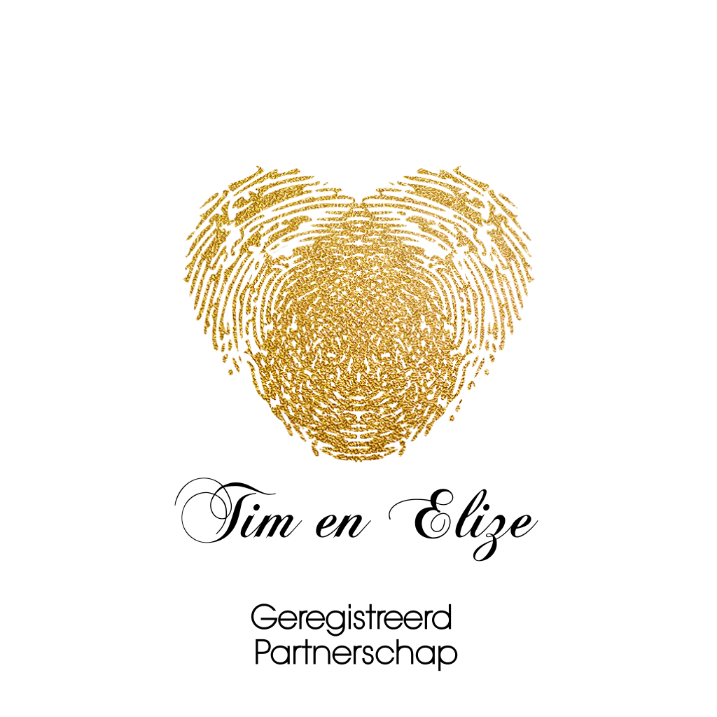 Geregistreerd Partnerschap kaart met veel wit en goud gekleurde vingerafdruk die je geheel zelf kan aanpassen. (3247)