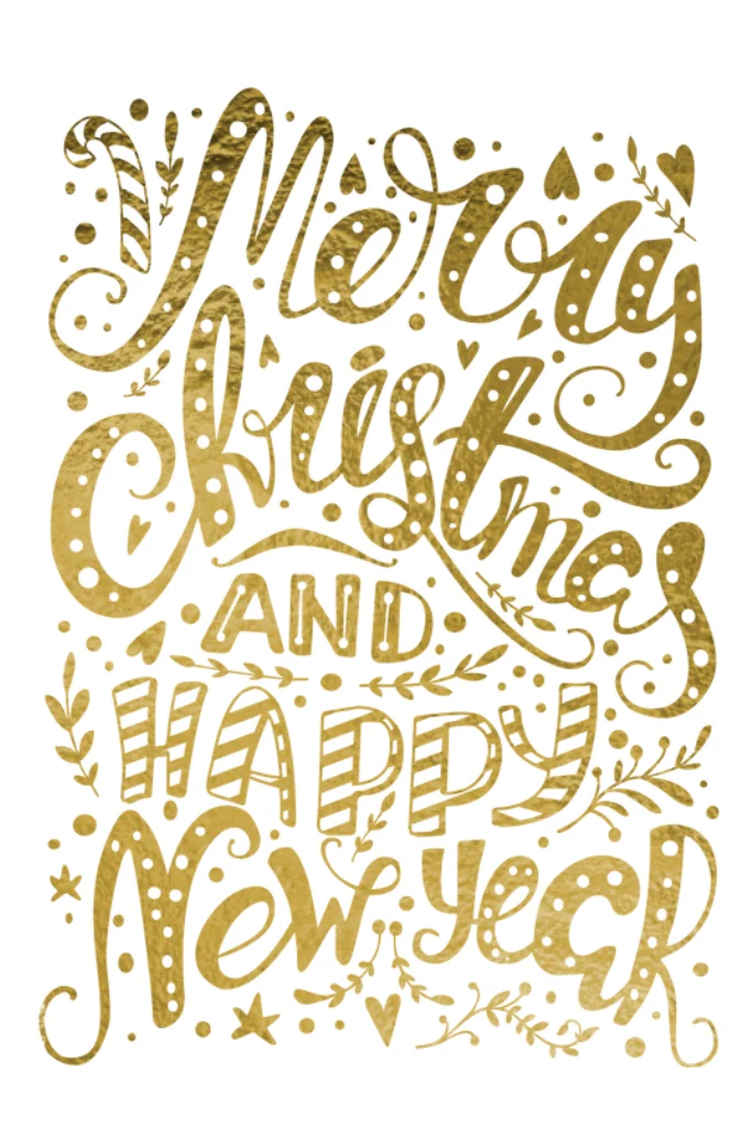 Kerstkaart met goudkleurige teksten. (5938) Start met dit lege ontwerp in onze tool of upload hier je eigen ontwerp.