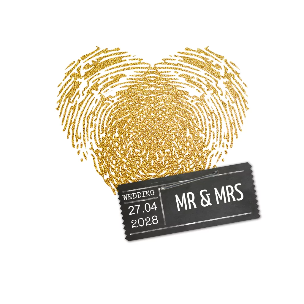 Trouwkaart met goud gekleurde vingerafdruk in hart vorm