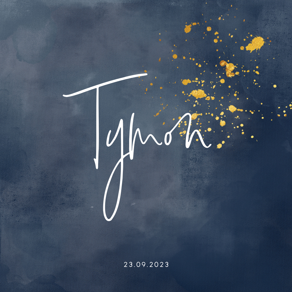 Hip geboortekaartje jongen met goud spetters