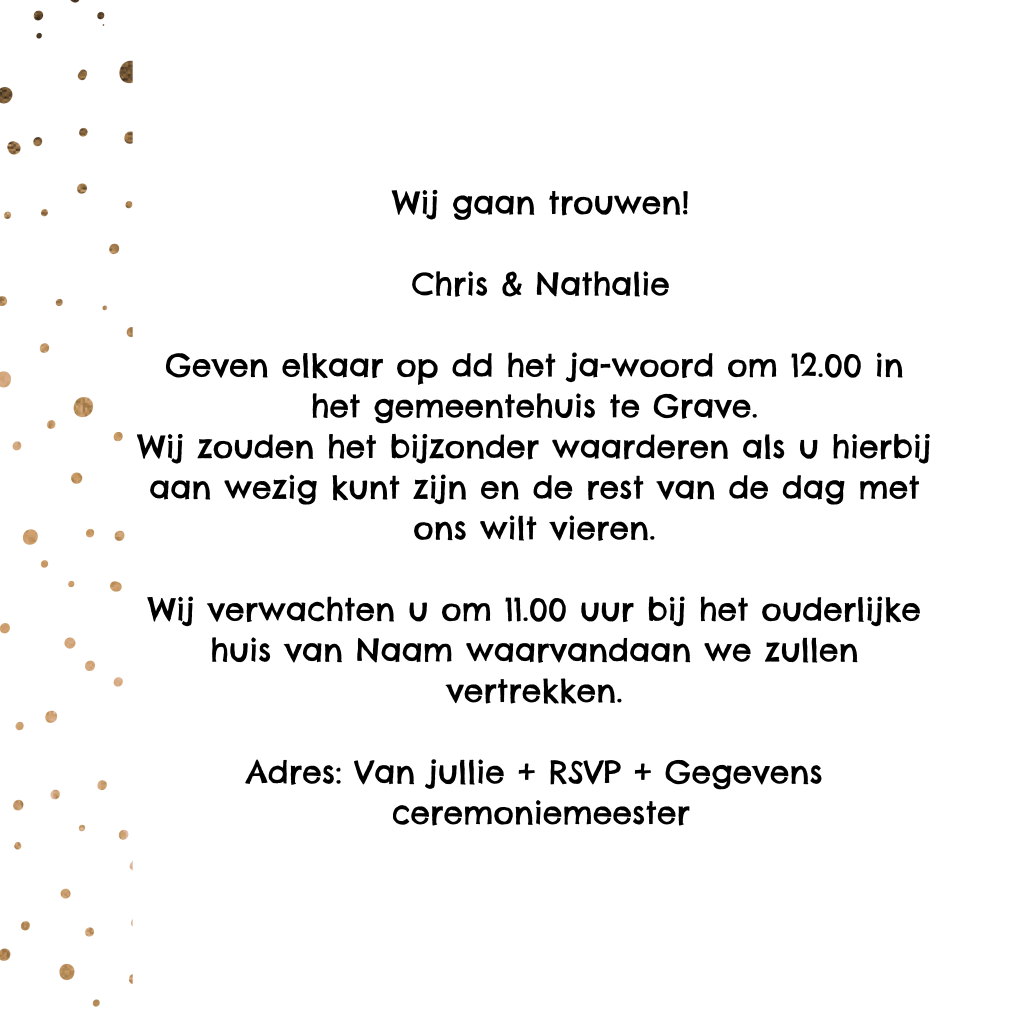 Hippe bruiloft uitnodiging koperen confetti en houten wegwijzer