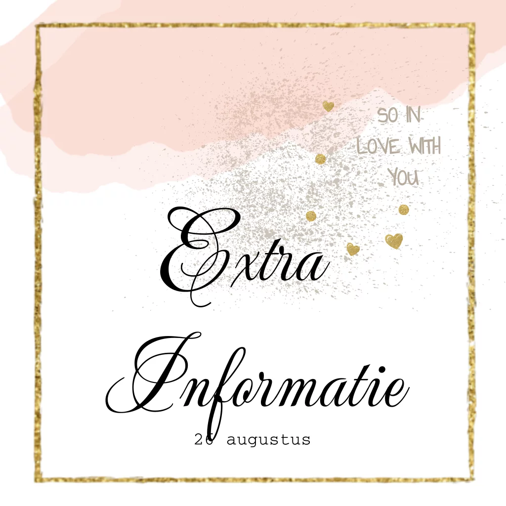 Hippe extra info kaart huwelijk met goudkleurig kader. (5170)