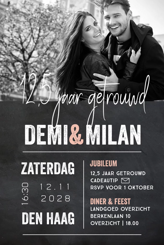Hippe jubileum 12,5 uitnodiging krijtbord achtergrond en eigen foto