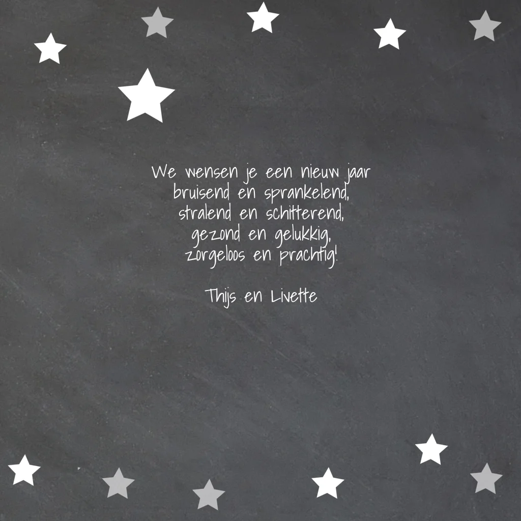 Hippe nieuwjaarskaart krijtbord wegwijs hout