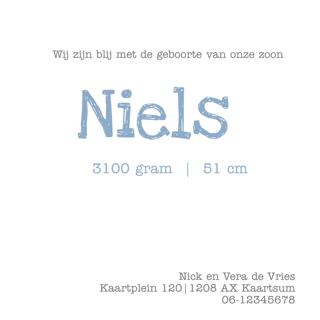 Leuke geboortekaart voor jongen met blauwe muisjes