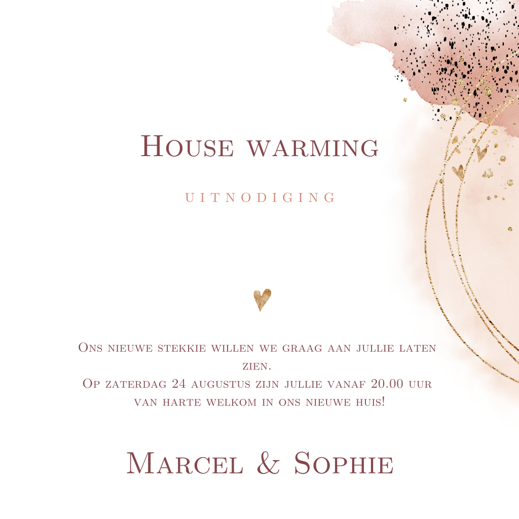 House warming uitnodiging in terra kleur en goudlook. (22504)