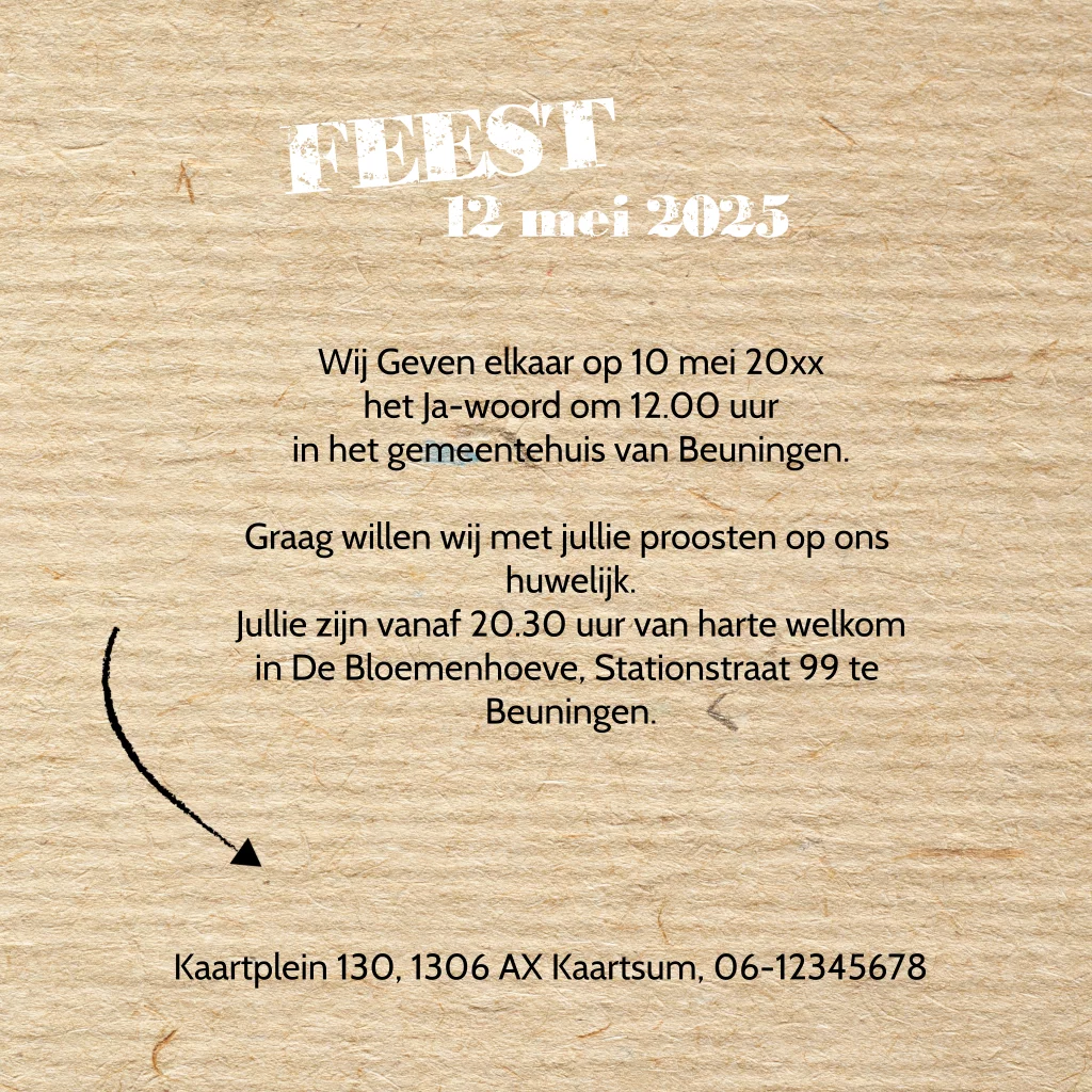 Huwelijkskaart op kraft papier papa en mama gaan trouwen