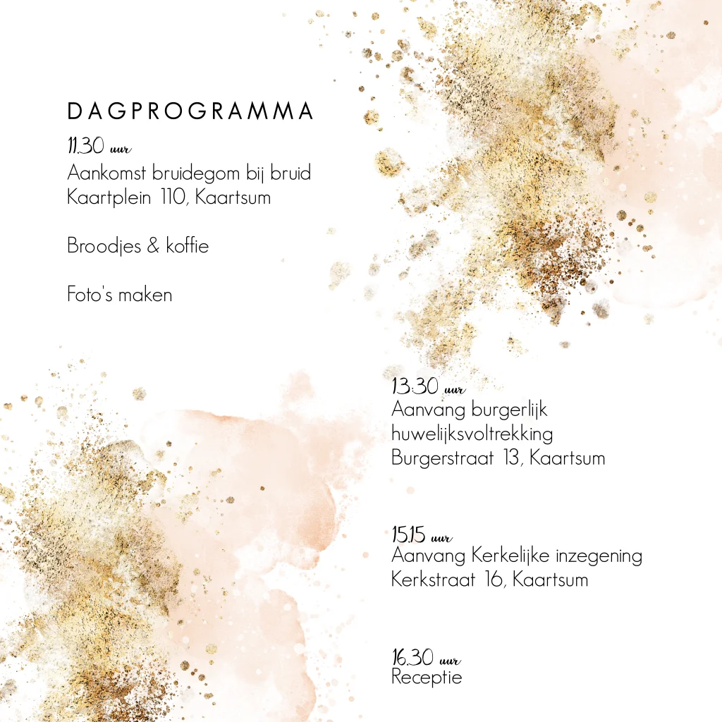 Inlegkaart trouwkaart waterverf pastel dagprogramma