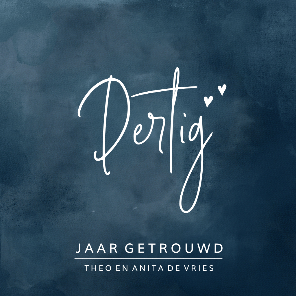 Prachtige uitnodiging voor een 30 jarig huwelijksjubileum met blauwe achtergrond en foliedruk. (22571)