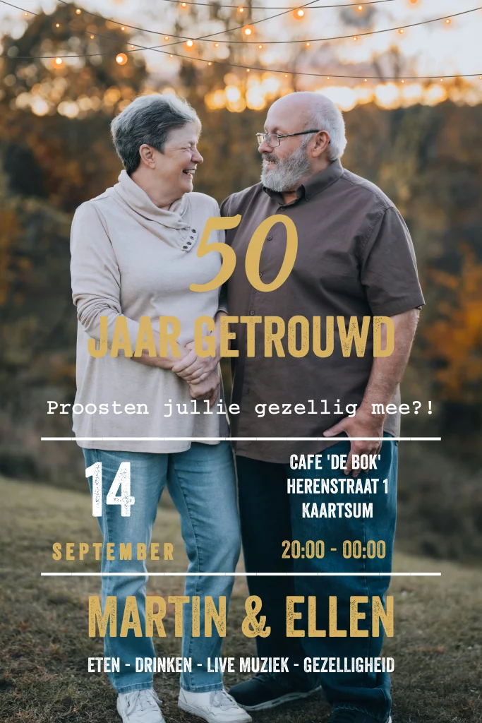 Jubileum uitnodiging feest met foto 50 jaar getrouwd