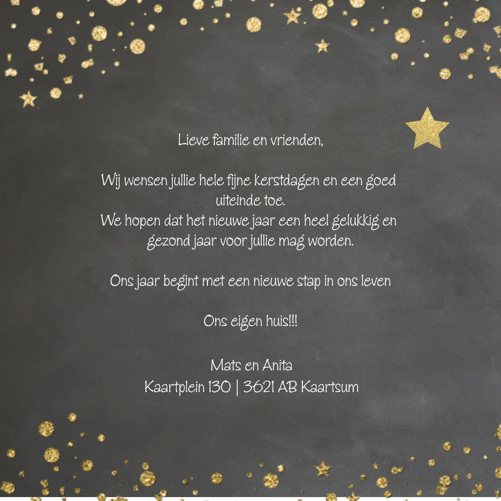 Kerst verhuiskaart met foto krijtbord en gouden label