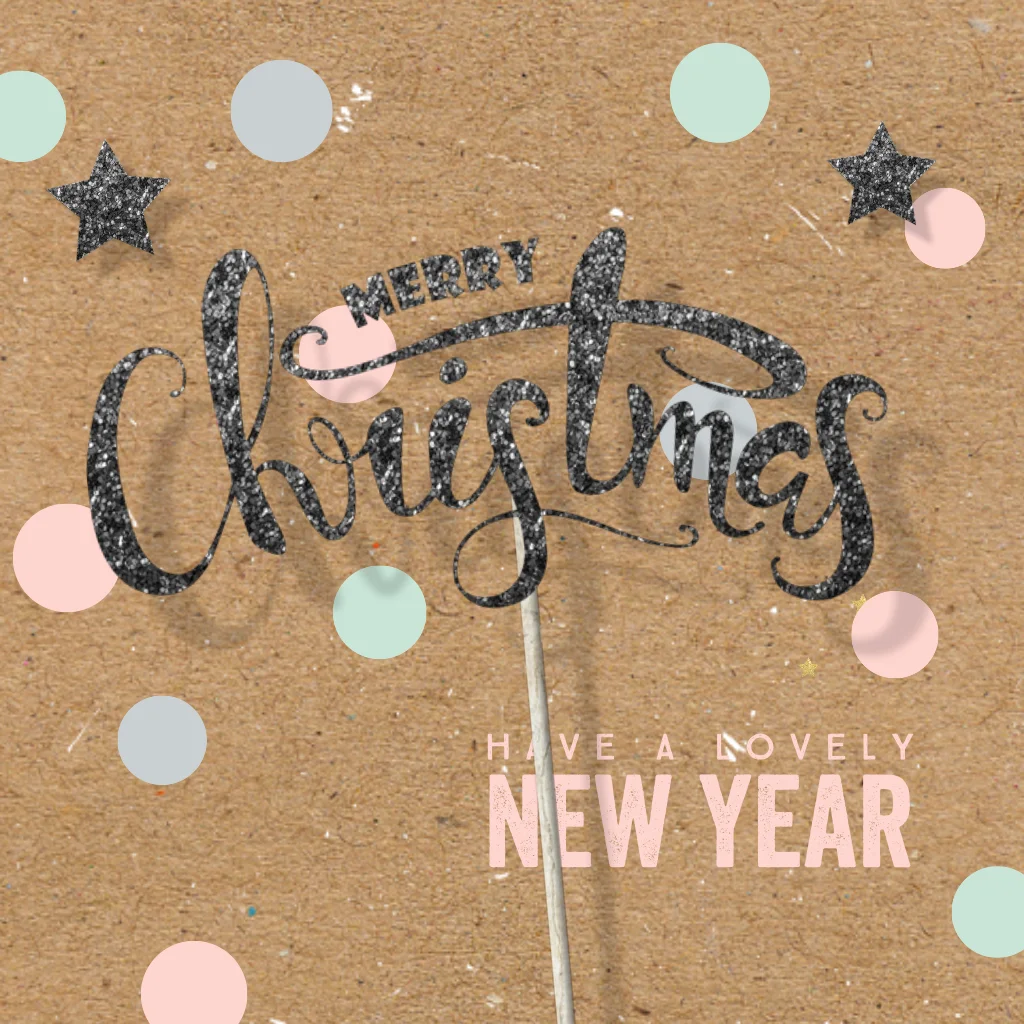 Hippe kerstkaart met kraft achtergrond en pastel confetti