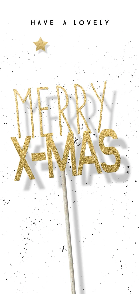Langwerpige kerstkaart met toverstaf merry x-mas