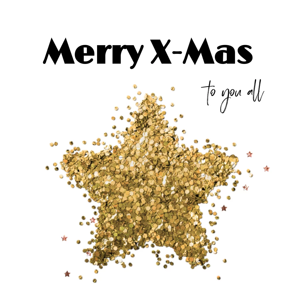 Hippe kerstkaart met een goud-look ster van kleine sterretjes. (5931)