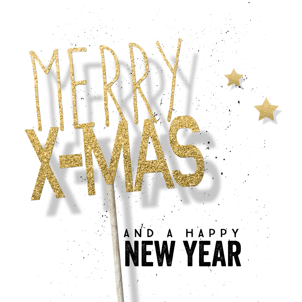 Moderne kerstkaart met sterren en goudkleurige accenten. (5935)