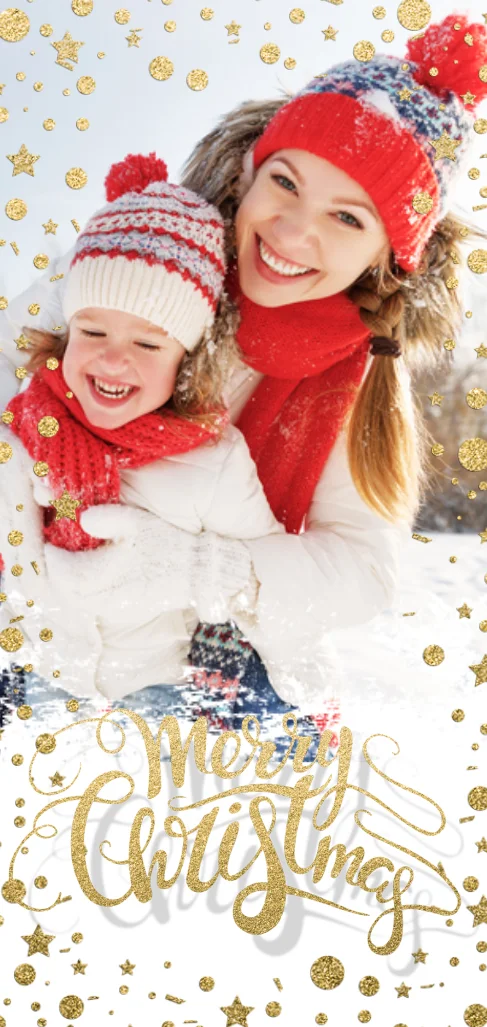 Hippe foto kerstkaart met goudkleurige confetti. (5941)