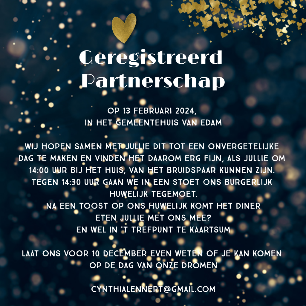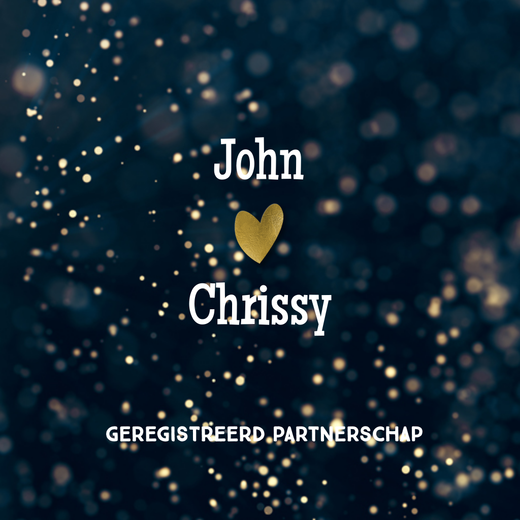 Luxe uitnodiging Geregistreerd Partnerschap met goudkleurige confetti
