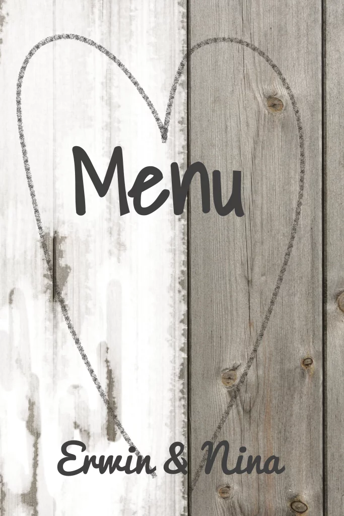 Menukaart getekend hart wit geverfd hout. Met linnen binnenzijde. (2035)