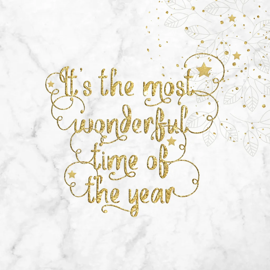 Luxe kerstkaart in marmer en kerstwens in glitter goudkleur
