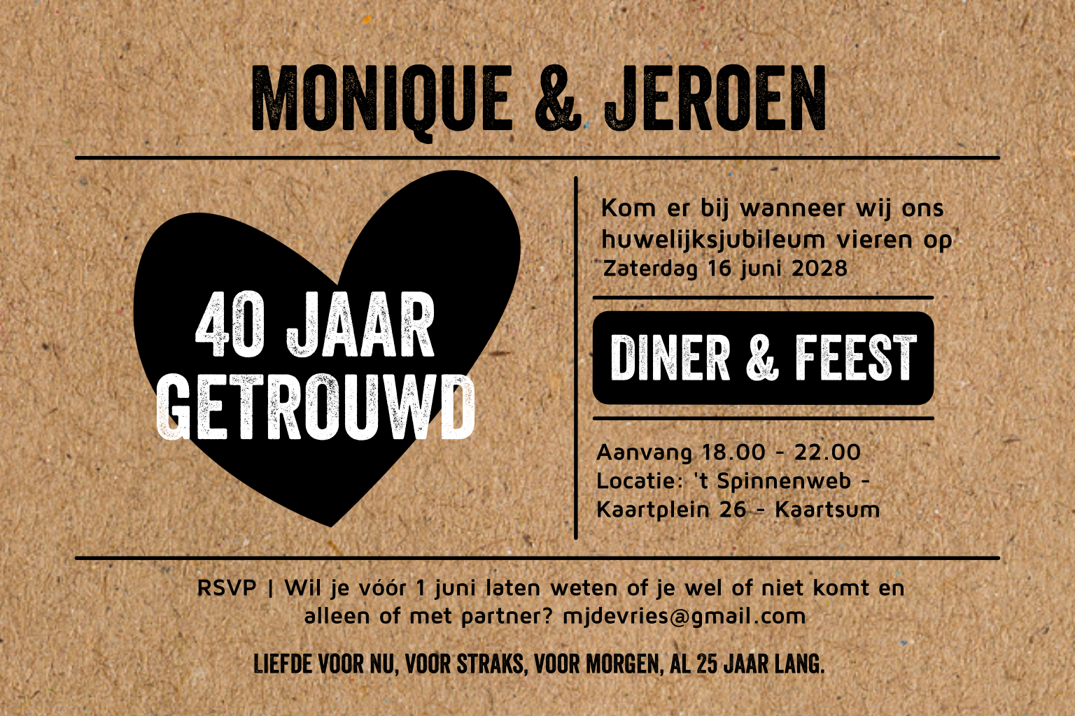 Moderne uitnodiging 40 jaar getrouwd kraftlook achtergrond