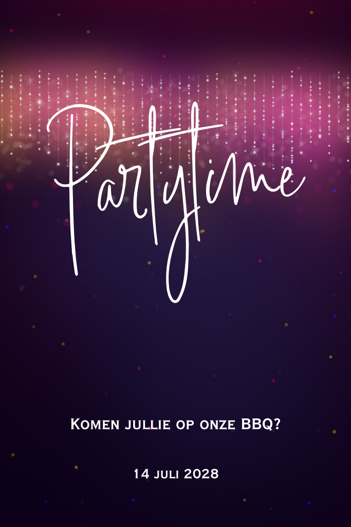 Hippe uitnodiging voor een bbq feest paars met lampjes. (22558)