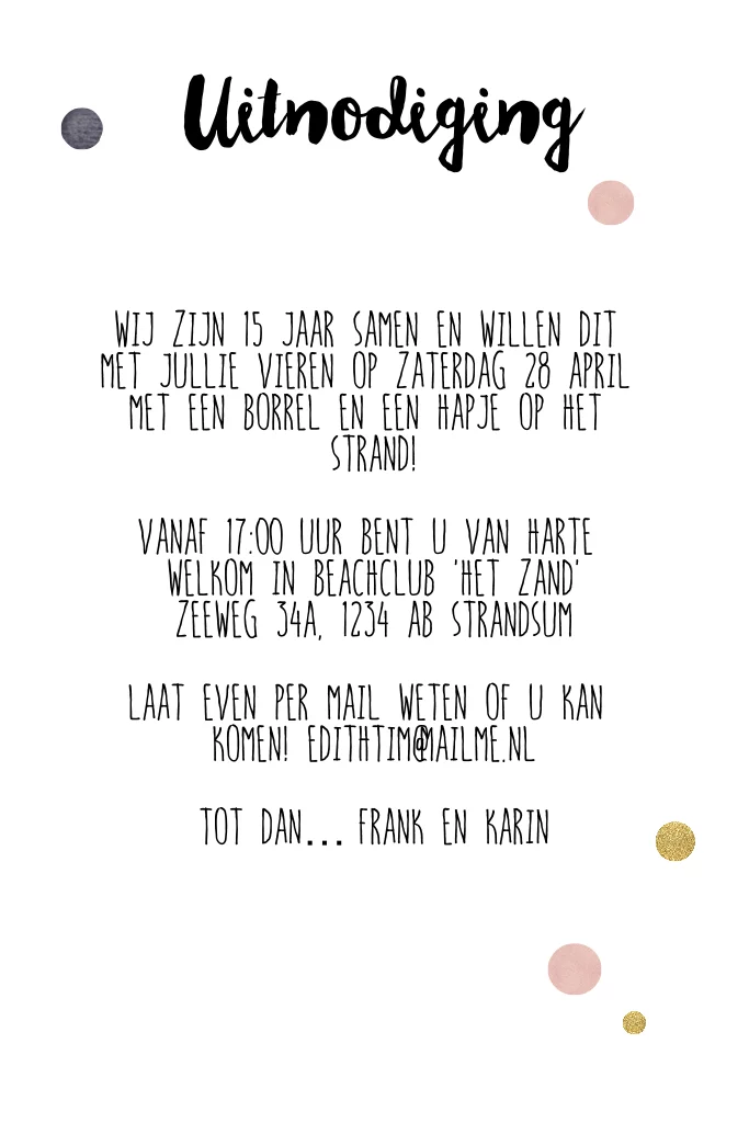 Hippe trendy uitnodigingskaart met pastel confetti in roze en paars. Met goud-look glitter tekst. (5240)