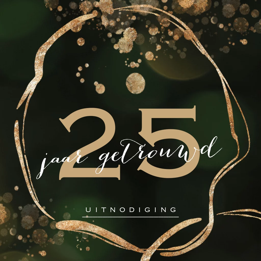 Moderne uitnodiging voor een 25 jarig huwelijksjubileum met groen en goud look. (24206)