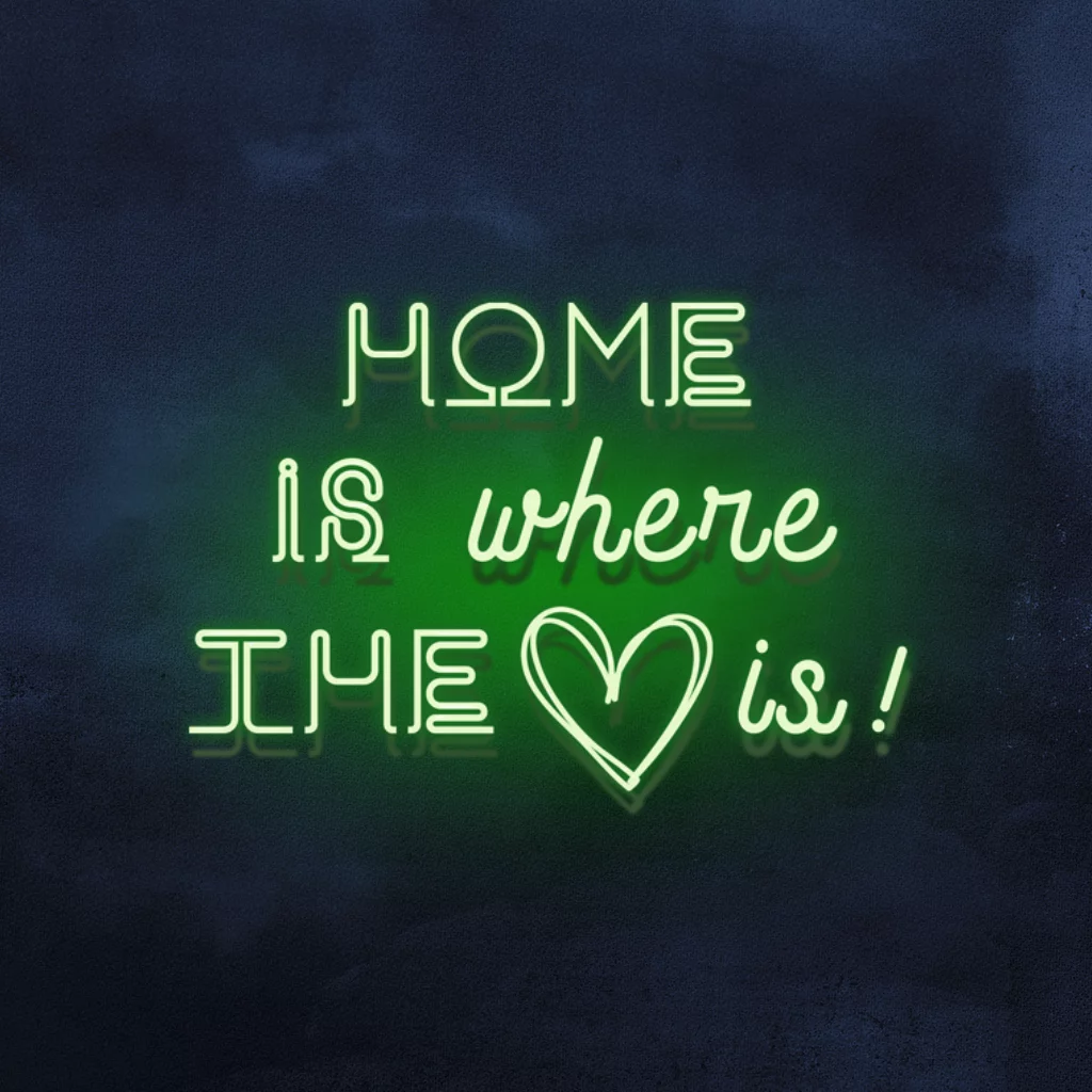 Moderne verhuiskaart neon home is where the heart is. (24321)