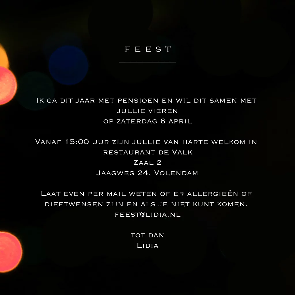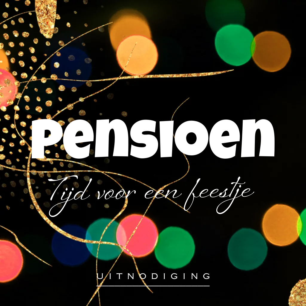 Hippe en kleurrijke uitnodiging ik ga met pensioen met confetti en foliedruk. (24289)